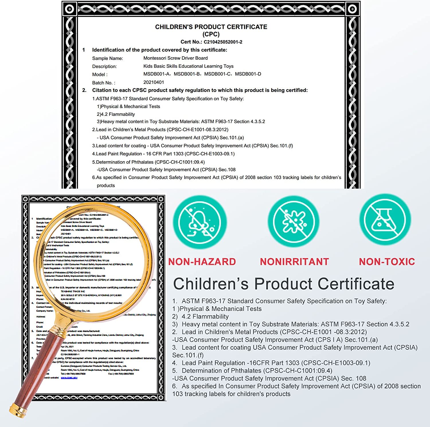 - This Montessori Materials Toys Set Lets Kids (3+) Practice of Using A Screwdriver, Hexagonal Head By Removing and Re-inserting Five Screws Using The Supplied Tools.
