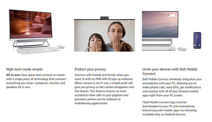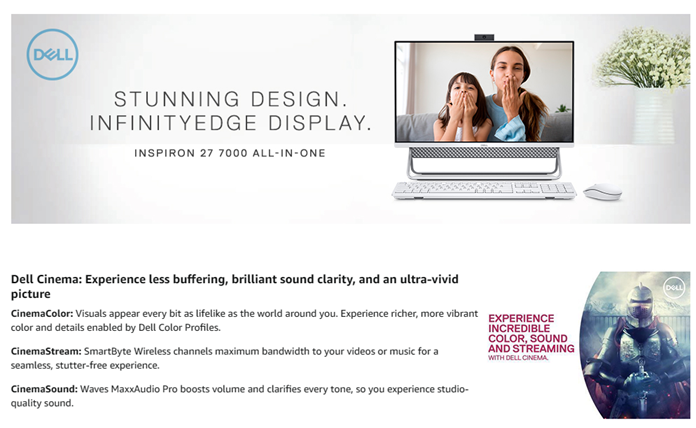 • Get the full Dell Cinema experience with the available InfinityEdge screen Featuring CinemaColor. Have an unforgettable viewing experience with the deepest blacks, the most dazzling bright, and more vivid detail Across the entire color spectrum.