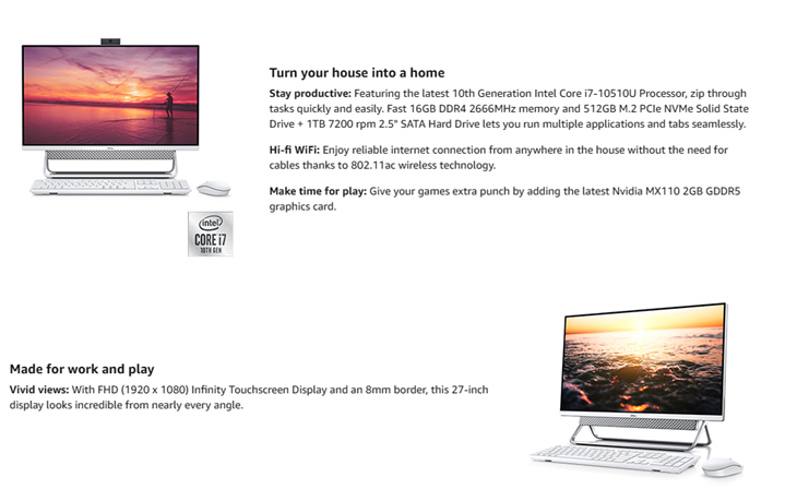 DELL Inspiron 7790- 27 Inch All In One FHD Touch, Intel Core i7, 16GB Memory, 512GB Solid State Drive + 1TB, Windows 10 Home (Latest Model) - Silver