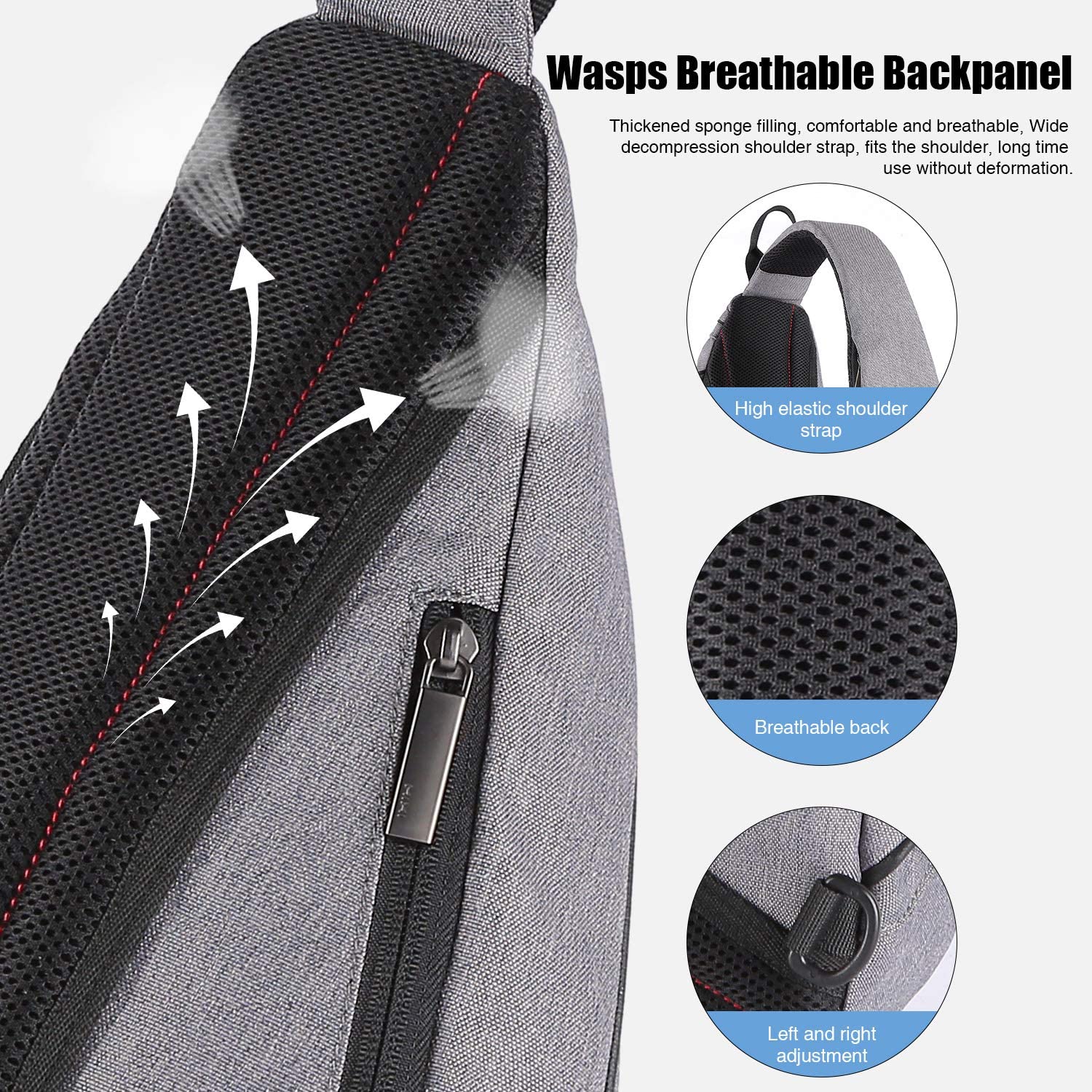 REVERSIBLE & FLEXIBLE SHOULDER STRAP - Ideal sling bag backpack for BOTH lefties and righties, easy to adjust the length from 23.6'' to max 33.4'' to meet your requirement. Can be worn as chest, shoulder & crossbody sling bag.