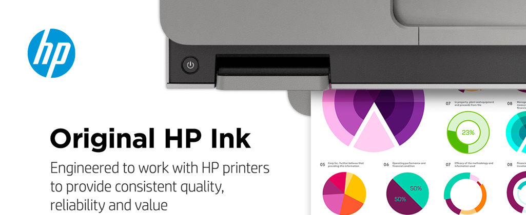 • Original HP Ink is engineered to work with HP printers to provide consistent quality, reliability and value