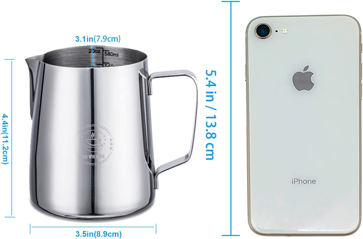 - ☕【Convenience & Accuracy】This precise capacity of 20oz milk frother pitcher has engraved the liquid measurement on both sides, makes it easy to read, it is perfect for 2 or 3 cups of cappuccinos or espressos needs.