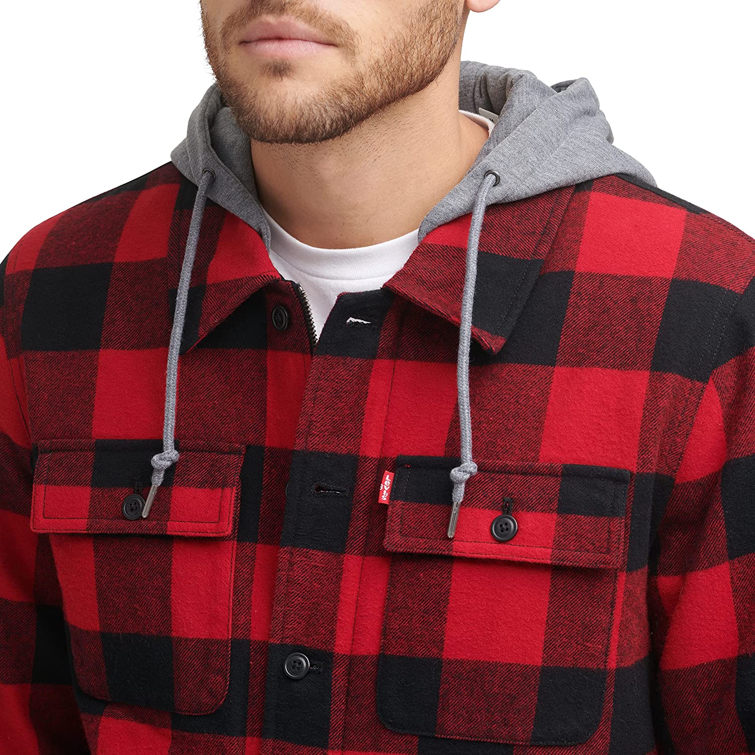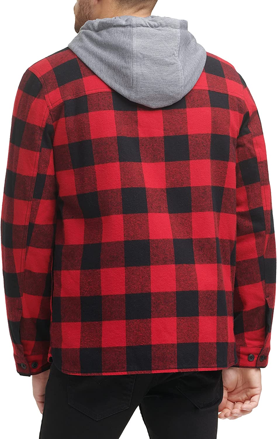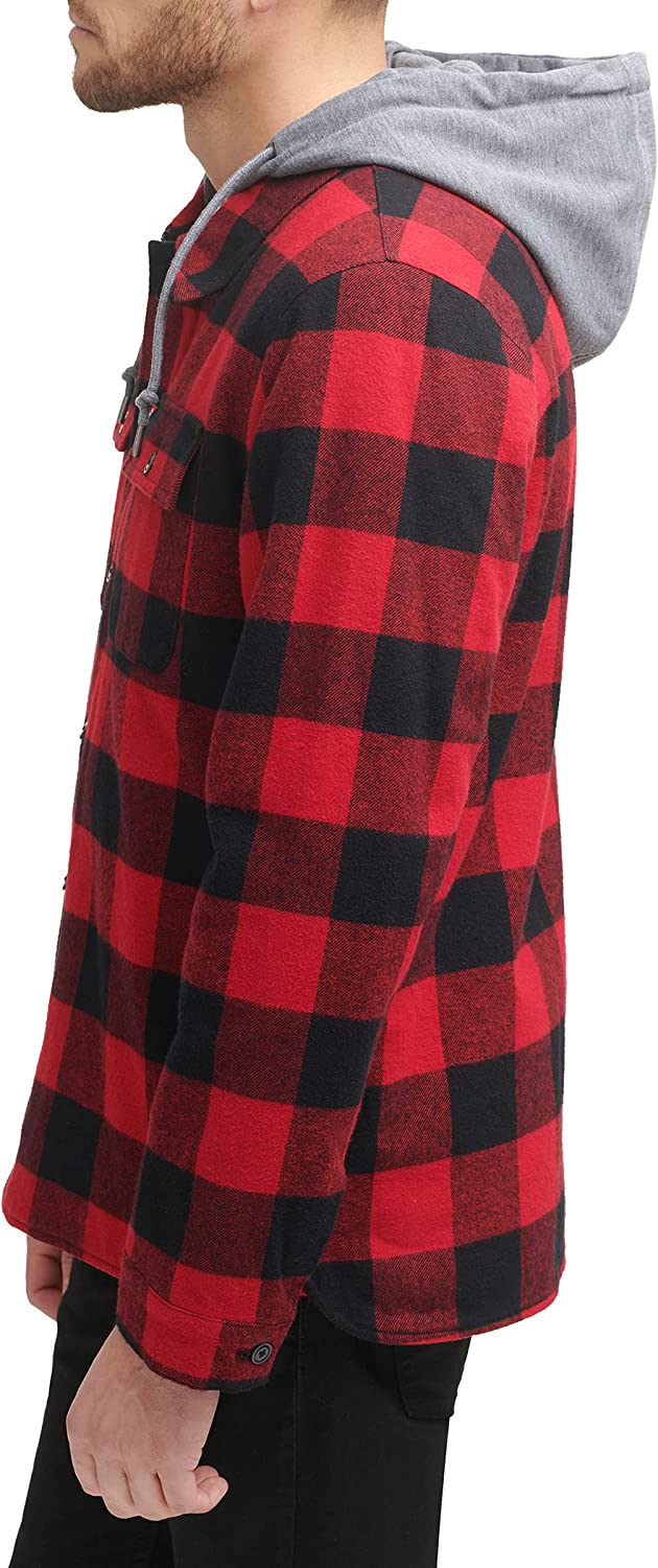 This classic shirt jacket provides you with comfort and style. The full Sherpa lining and jersey hood add extra warmth for chilly fall evenings.