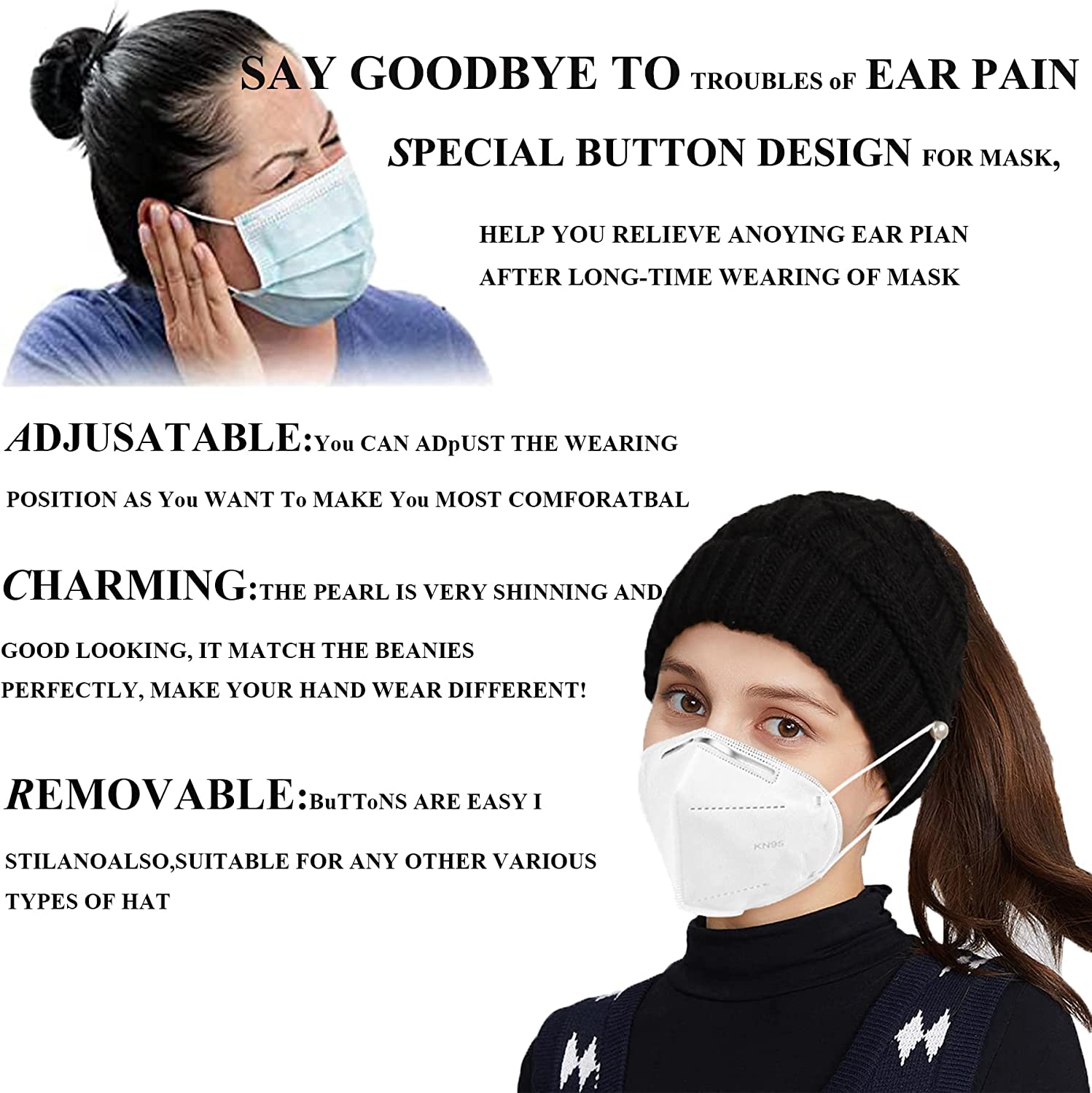 Upgraded Pearl Buttons: We’ve listen to the feedback of our treasured customers and improved the buttons for mask. With our newly designed larger pearl button, you will get rid of the annoying ear pain when you wear a mask. It is larger than previous version, so it can fit all kinds of daily mask. These ponytail hat with buttons will allow you to put the mask straps around the buttons instead of your ears,a more comfortable way to wear face cover!