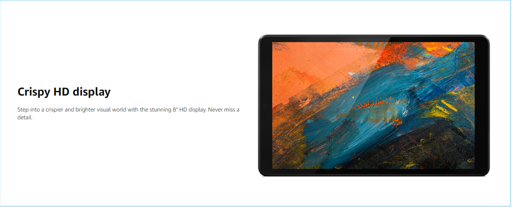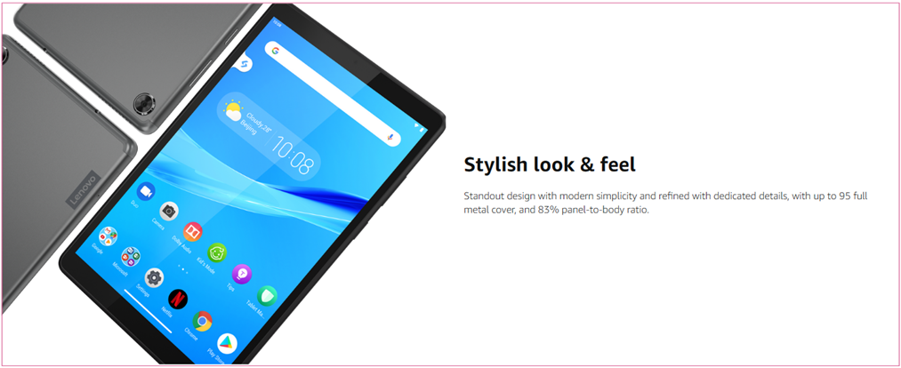 Stunning and stylish, the Lenovo Tab M8 is the 2nd generation multimedia tablet that's tailored to make your entertainment experience richer. With a standout metal design, this small tablet is sleek, modern, and refined. The 8-inch HD display is crisp and bright, so you'll never miss a detail of your favorite streaming movie or online game. A fast and powerful quad-core processor gives you non-stop gaming and videos, while the long-life battery lets you watch or play all day without the need to recharge! Bluetooth® 5.0 and Wi-Fi 802.11 a/b/g/n/ac (2.4/5 GHz) are built in, giving you strong wireless connectivity.