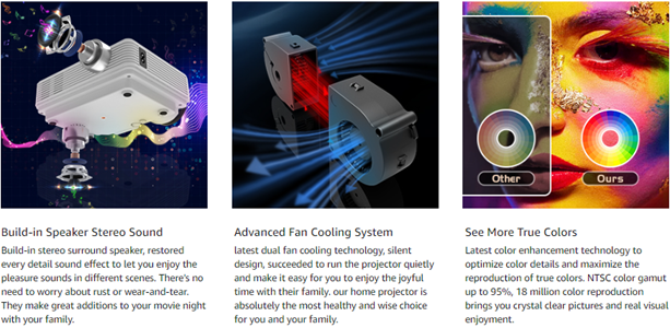 4. We also upgrade this projector with eye-protective and uniform illumination technique to ensure your optimum visual experience.