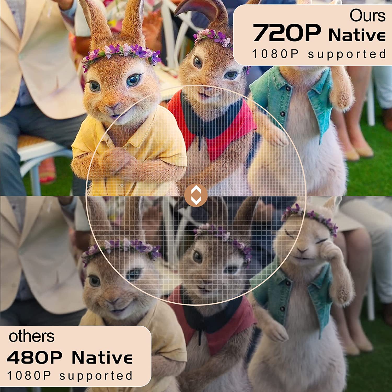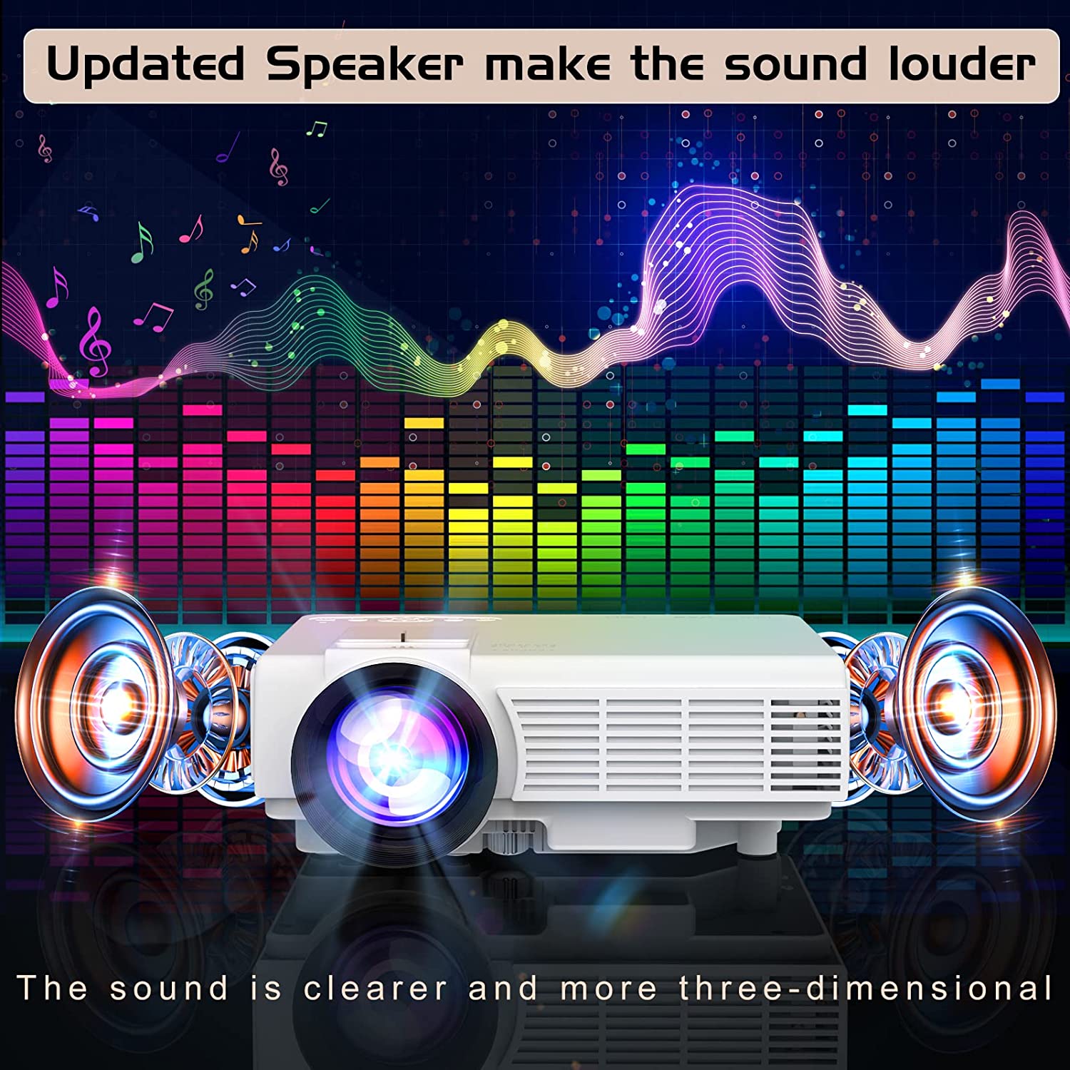 • 【50% More Clear Images than Similar Projectors 】2023 Upgraded Chips make this movie projector more clear than other similar projectors. Our technical department researched and upgraded the chip to improve the clarity of the picture, so you can enjoy the movie everywhere and anytime.