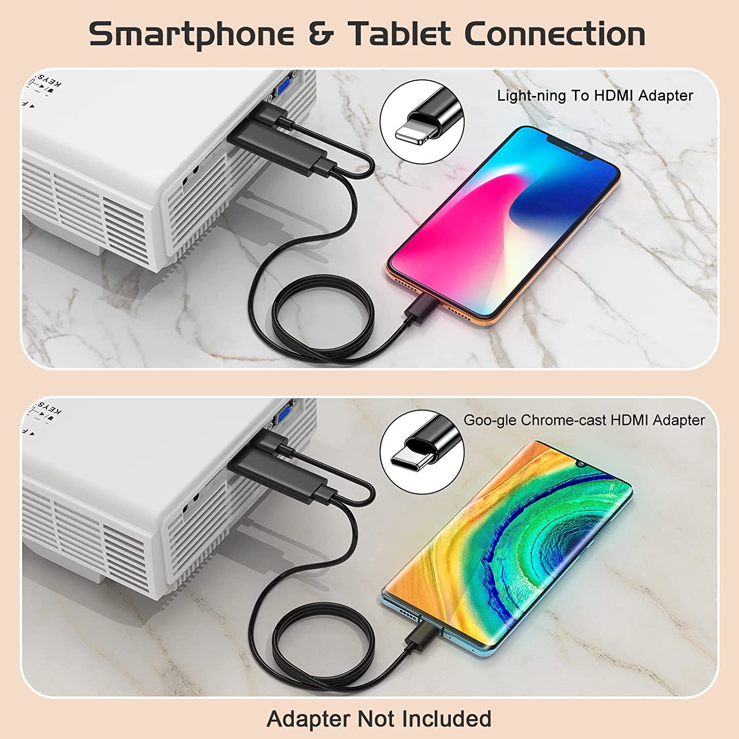 • 【Multiple Input, Compatible with Most Devices and Phones】This portable movie projector is fit for playing videos, TV series, photos sharing, football matches etc. It can be easily connected with laptops, smartphones, tablets, USB drives, X-Box to enjoy big games. ★★★When connect with phone, please purchase an extra HDMI adapter. Please kindly note projectors with mirrored are incompatible with Netflix and Hulu due to copyright issues, you can use TV Stick to play Netflix.★★★