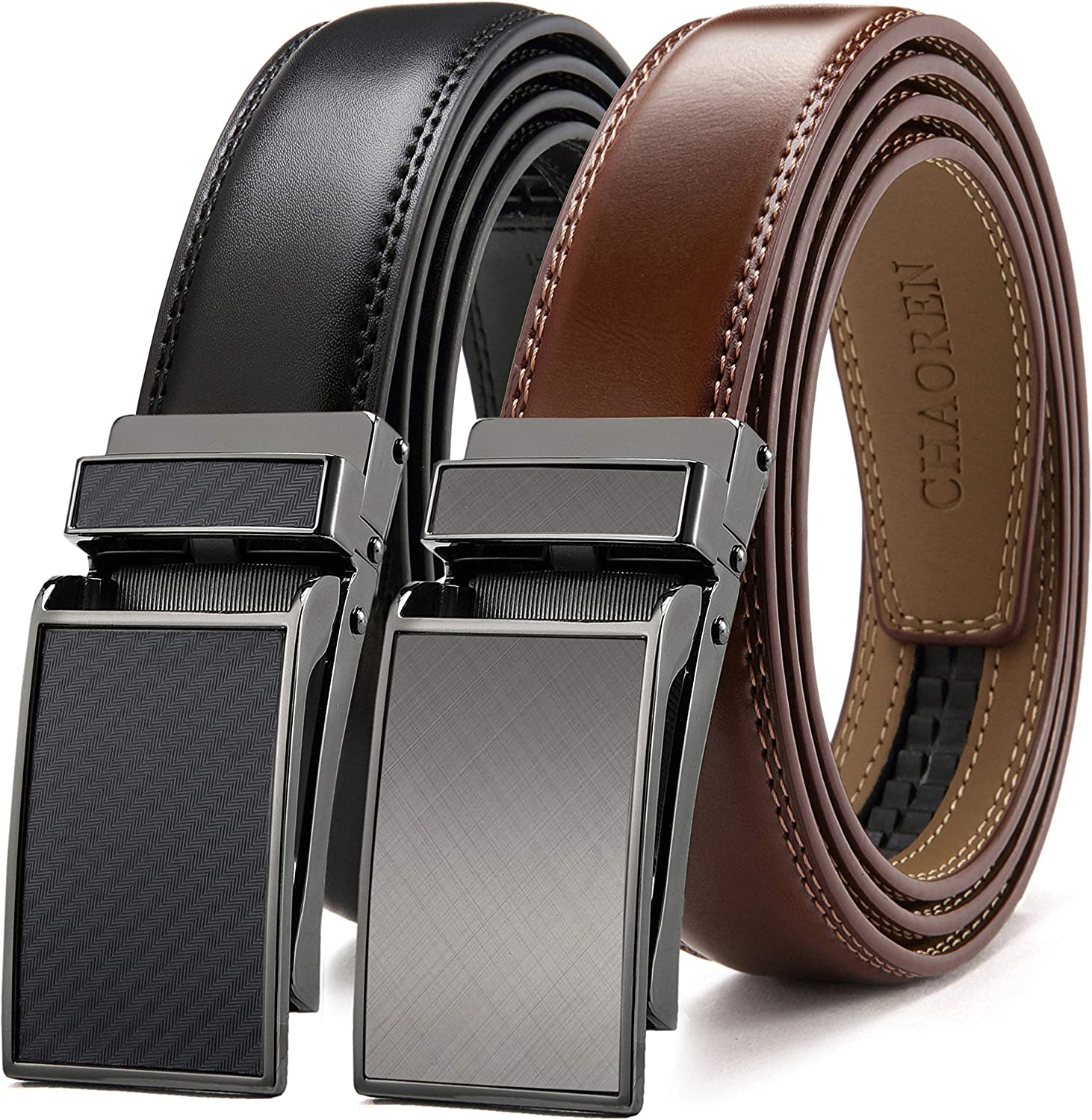 FOR EXACT FIT - Ratchet belt allows for up to 1/4" adjustments for perfect fit everywhere. The rachette belt features an easily removable buckle that allows you to cut the black and cognac belt to your ideal size.