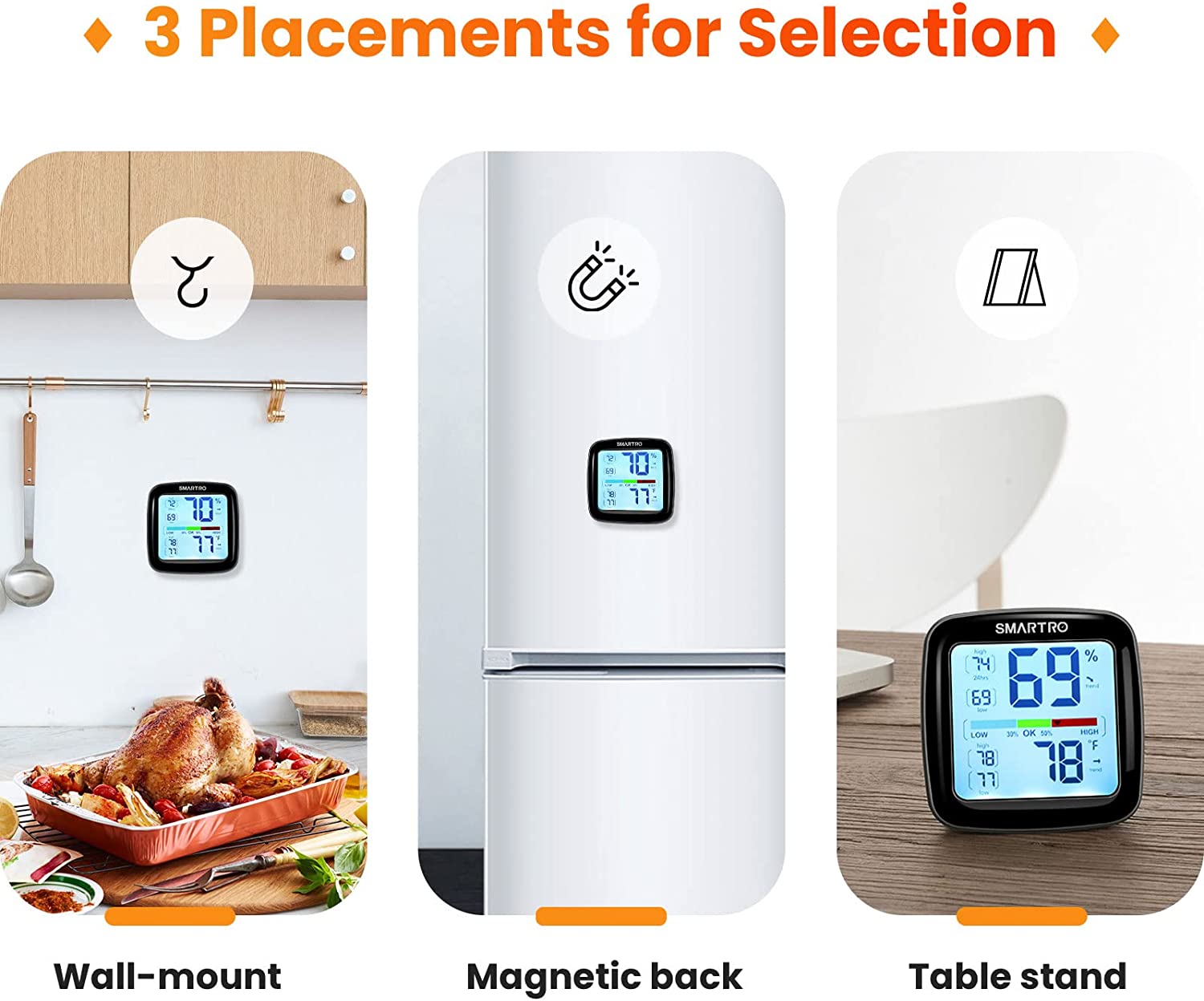 ✨【Wide Applications & More Mounting Options】With a retractable stand, two powerful magnets and a wall-mount hole, this digital thermometer indoor can be easily attached to your refrigerator, wall or placed on a table. Suitable for baby’s room, nursery, office, closet, incubator, greenhouse, garden, wine cellar, basement critter terrarium etc.