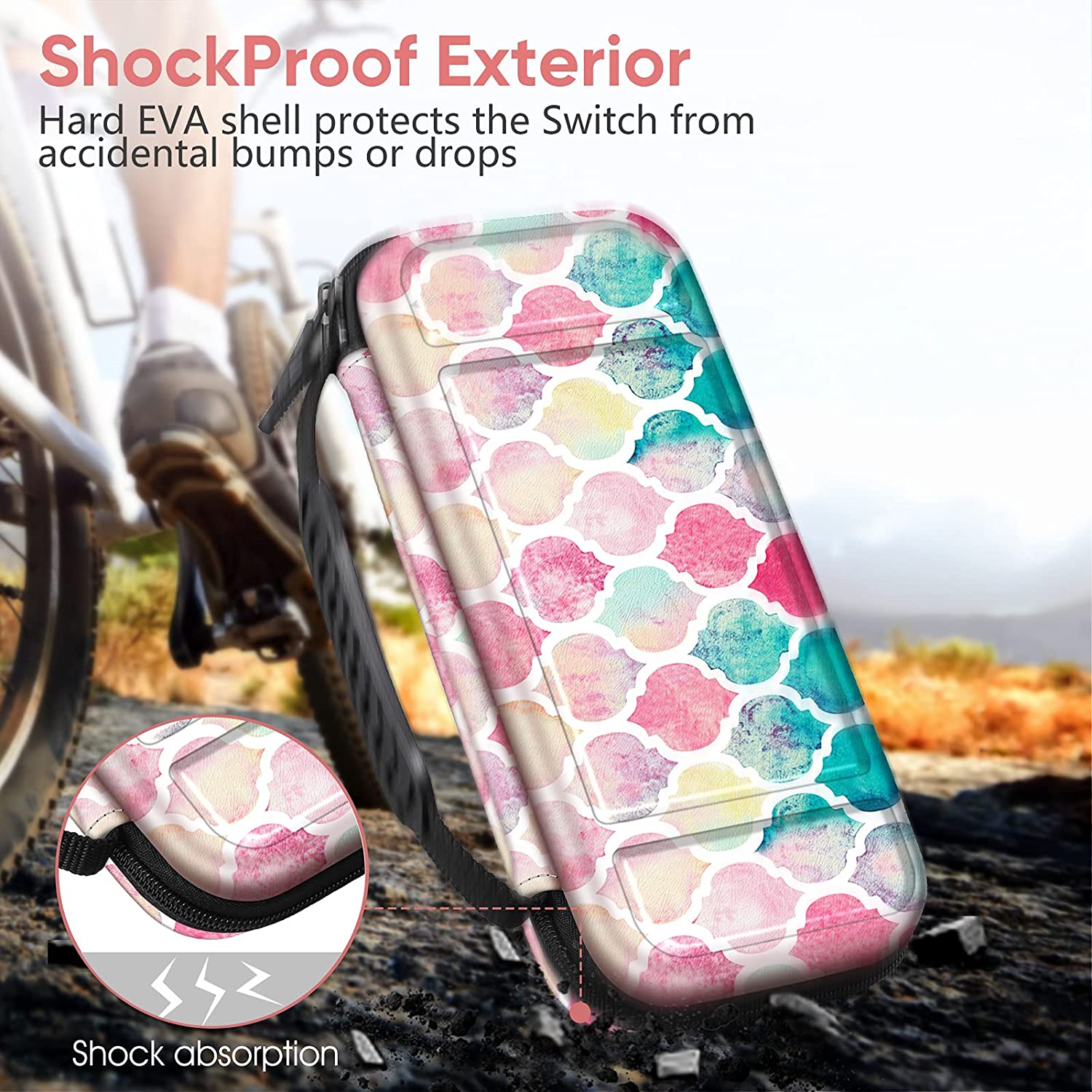 - Hard EVA shell protects the Nintendo Switch - OLED Model (2021) 7.0 Inch / Nintendo Switch (2017) 6.2 Inch from accidental bump, drop and scratch. Soft Interior protects the Switch from everyday wear and tear. Official Micklyn Le Feuvre product.
