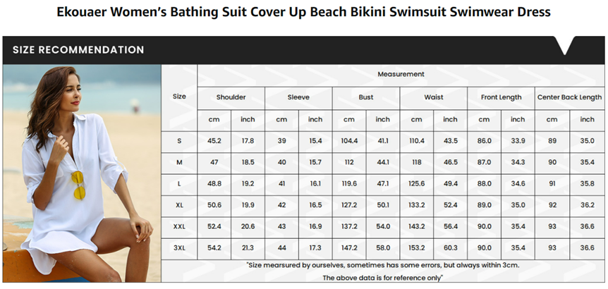 Ekouaer Women's Swimsuit Beach Cover Up Shirt Bikini Beachwear Bathing Suit Beach Dress