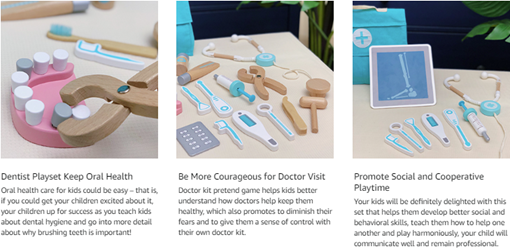 ?HIGH QUALITY & DECORATION : The stethoscope is so real that you can actually hear heat beat, Magnetic connects different parts which made easy to play, It has removable teeth, the ID Card and prescription has a place for child to fill out corresponding information, so your children can role play like a real dentist