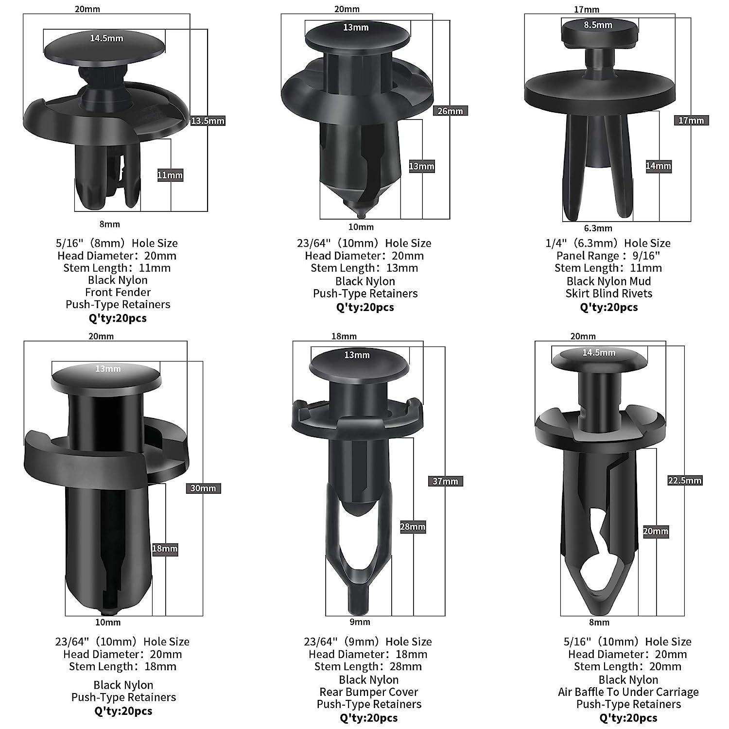 Car Screw Clips Includes 6 Most Popular Sizes from 6.3(1/4"),8(5/16"),9(23/64") to 10 (25/64").