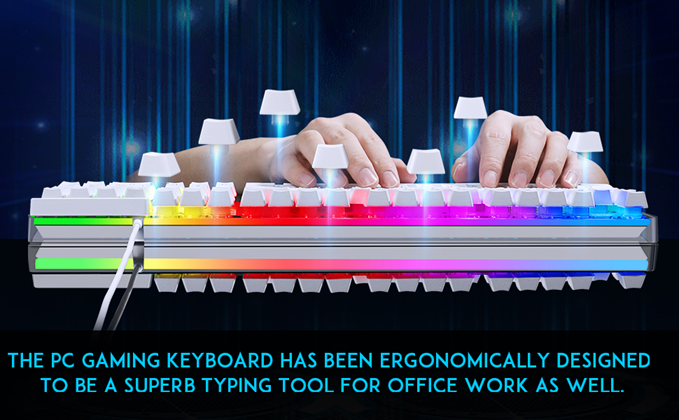 • 【Rainbow LED Backlight】The keyboard has a colorful LED backlight. The double-shot injection moulding process ensures that the letters never fade and have good light transmission. Even if you use the keyboard in the dark, you can see the letters clearly (also can be turned off).
