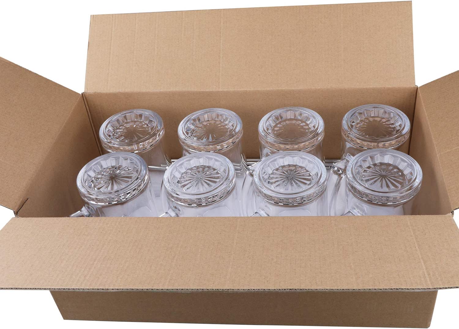 • Value Set:Comes 8 pack in safty package,hold 16oz,dimension 3.15inch*3.15inch*5.98inch,clear glass beer mugs with handle,and comes with 8 pieces stanless steel straw for free gift,reusable