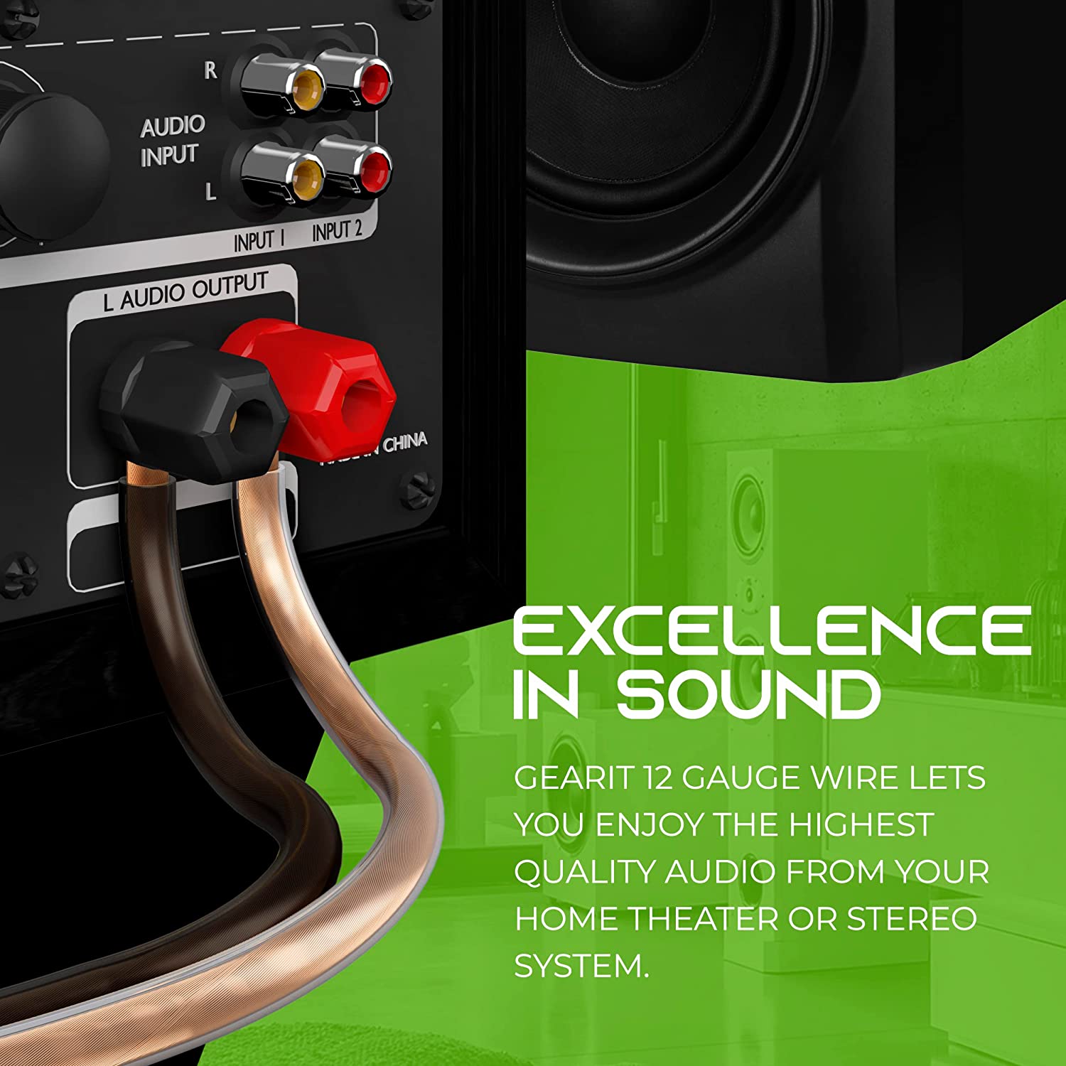 GearIT Pro Series 12AWG Speaker Wire, 12 Gauge Speaker Wire Cable (100 Feet / 30 Meters) Great Use for Home Theater Speakers and Car Speakers, Transparent Black/Clear