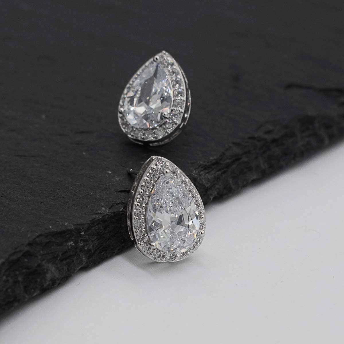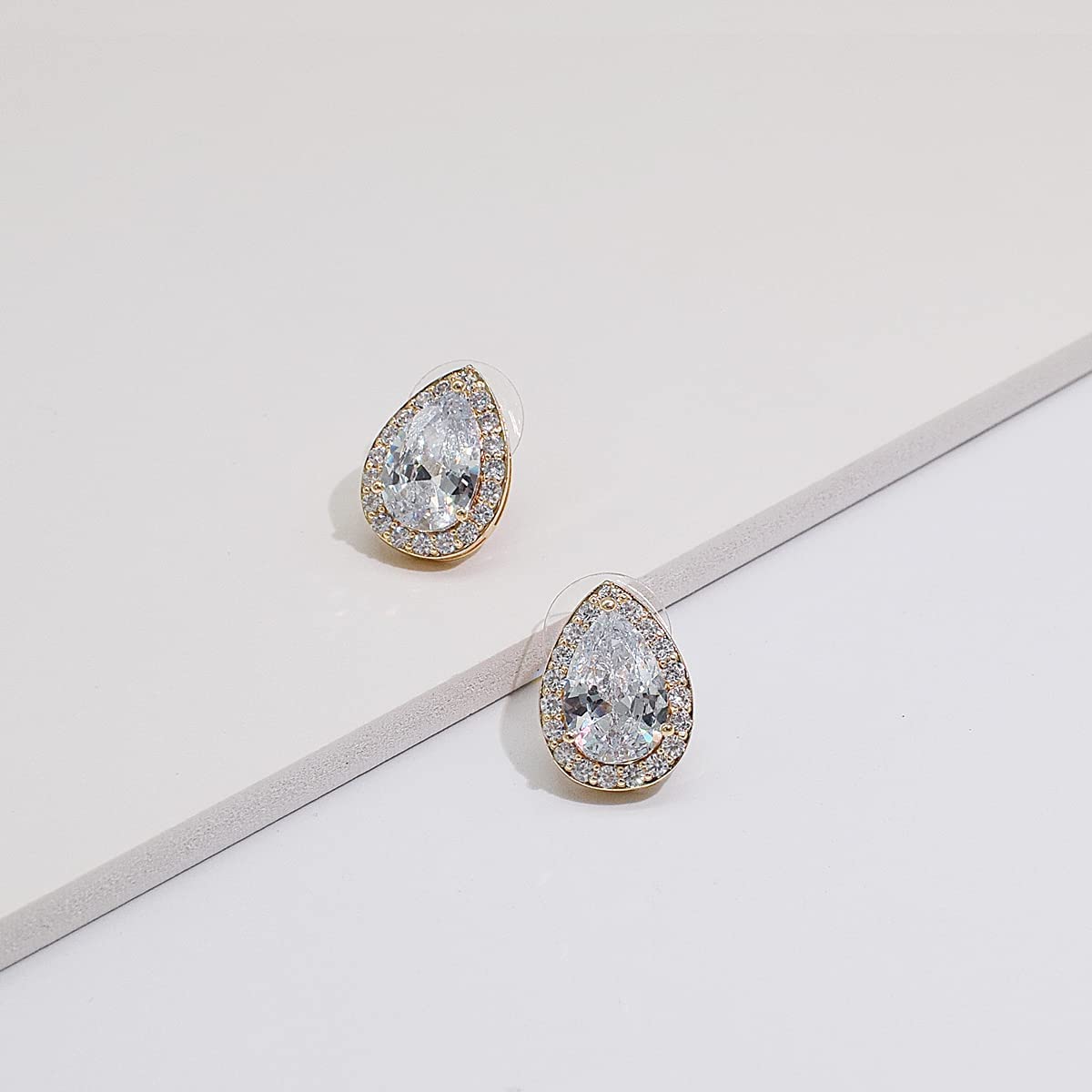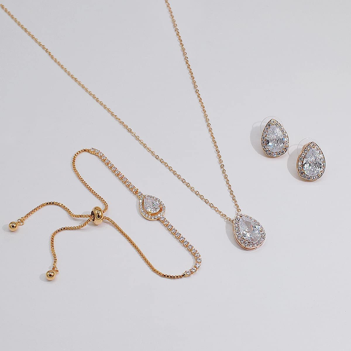 UDYLGOON CZ Tearsdrop Earrings Necklace Jewelry Set For Bride Bridesmaids Bridal Wedding Party Prom