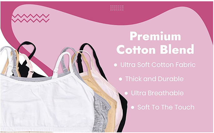 NO WIRES & NO HOOKS: Say Goodbye To Pinching & Poking - These Cotton Cami Bras And Hipster Panties Are So Comfortable, They're Even Great For Sleeping! We Made These Girls Training Bras Wire & Hook Free To Provide Long-Lasting Comfort.