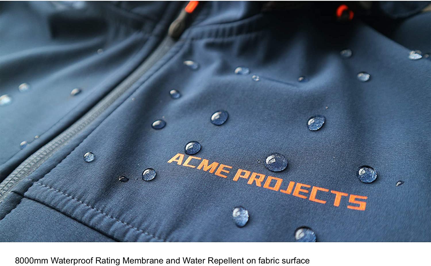 Acmelogy Men's Fleece Lined Softshell Jacket with Detachable Hood, Waterproof, Breathable, 8000mm/5000gm, YKK Zipper