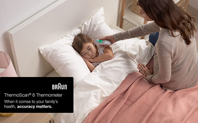 When checking for a fever at home, you want accurate and reliable results, quickly. The Braun ThermoScan 6 (IRT6515) delivers. It’s an easy to use ear thermometer with an easy to read digital display and color coded temperature readings. Unlike other ear thermometers, where the cool tip of the thermometer in the ear may result in lower temperatures, this digital thermometer features a pre-warmed tip that ensures accurate temperature readings. It also features infrared technology that takes a temperature in seconds, and is gentle, so it’s a great choice for the entire family. Use it as a digital baby ear thermometer, for toddlers and kids and even as an adult thermometer. The disposable lens filters keep sharing sanitary. *Based on Ardent Consulting Survey reporting that of the surveyed pediatricians who recommend a brand of thermometers to their patients, Braun is the most recommended brand, and of the surveyed pediatricians that use a branded thermometer, Braun is the most frequently used brand.
