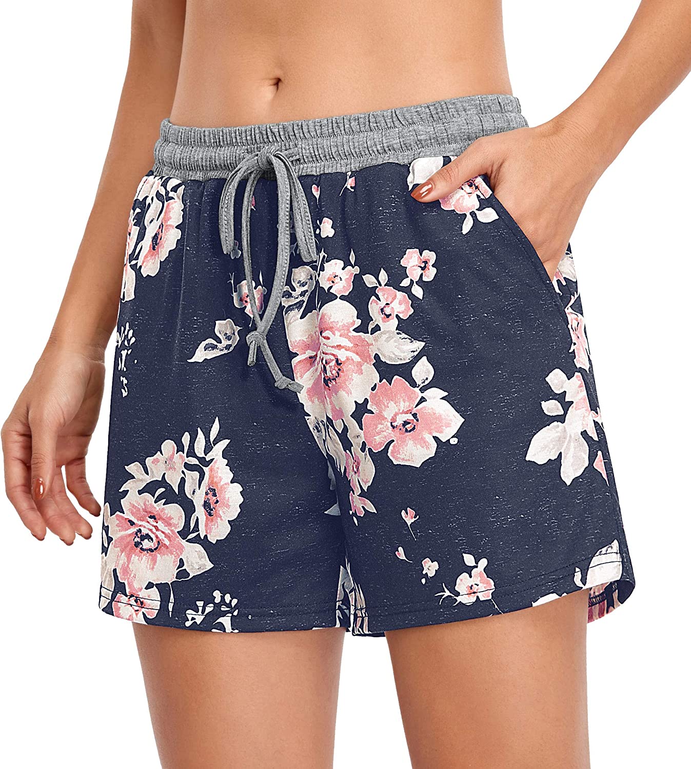 Blevonh Elastic Waist Soft Lounge Shorts Casual Pajama Shorts with Pockets