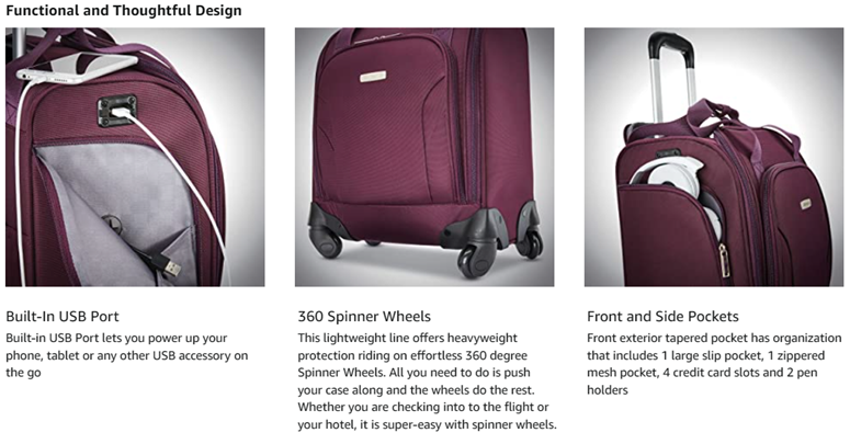 The Samsonite Spinner Underseater with USB Port is the ultimate travel companion. This smart spinner carry-on fits under the seat or in the overhead, and helps you beat carry-on fees. It’s small enough to count as your personal item.