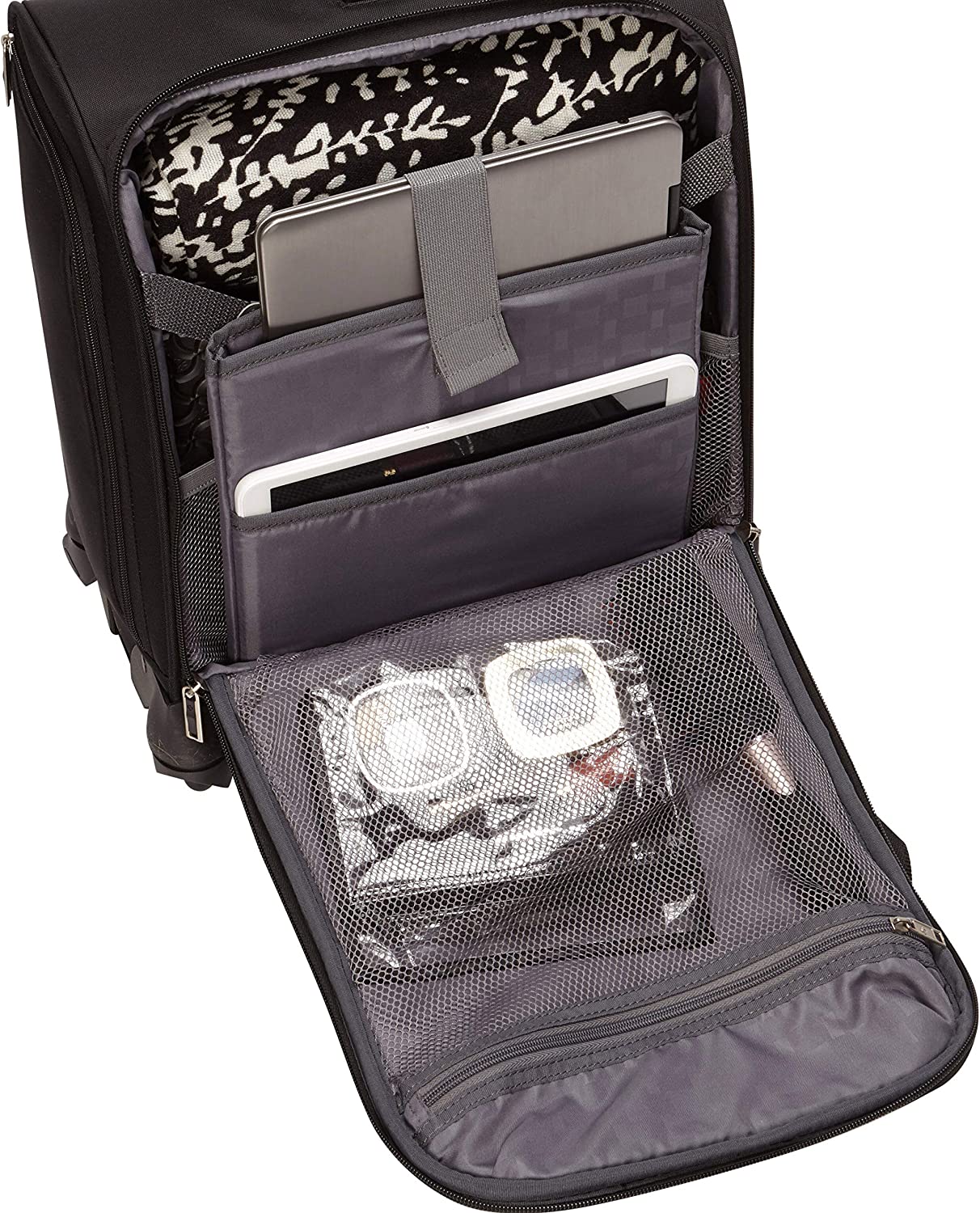 - Smarts Sleeve on back allows bag to be placed over handle of most upright luggage pieces