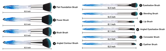 • ✦10pcs Full Makeup Brushes Set - Contains powder brush, foundation brush, blush brush, concealer brush, contour brush, eyeshadow brush, eyebrow brush, eyeline brush, lip brush. Multi-sized brushes will meet your variety makeup applications