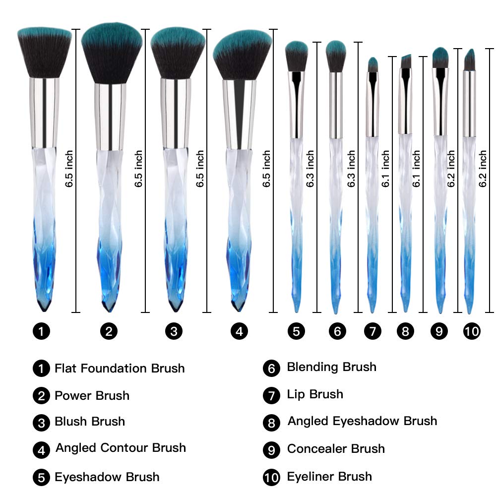 • ✦Special Crystal Handles Design - All the brushes handles are made in beautiful unicorn diamond shape. Its crystal wand handle can glitter fascinating colored light in the sunlight. Made of durable plastic with glitter, it gives you fairy magic feeling. More Durable than wood handles. Easy for cleaning and maintaining.