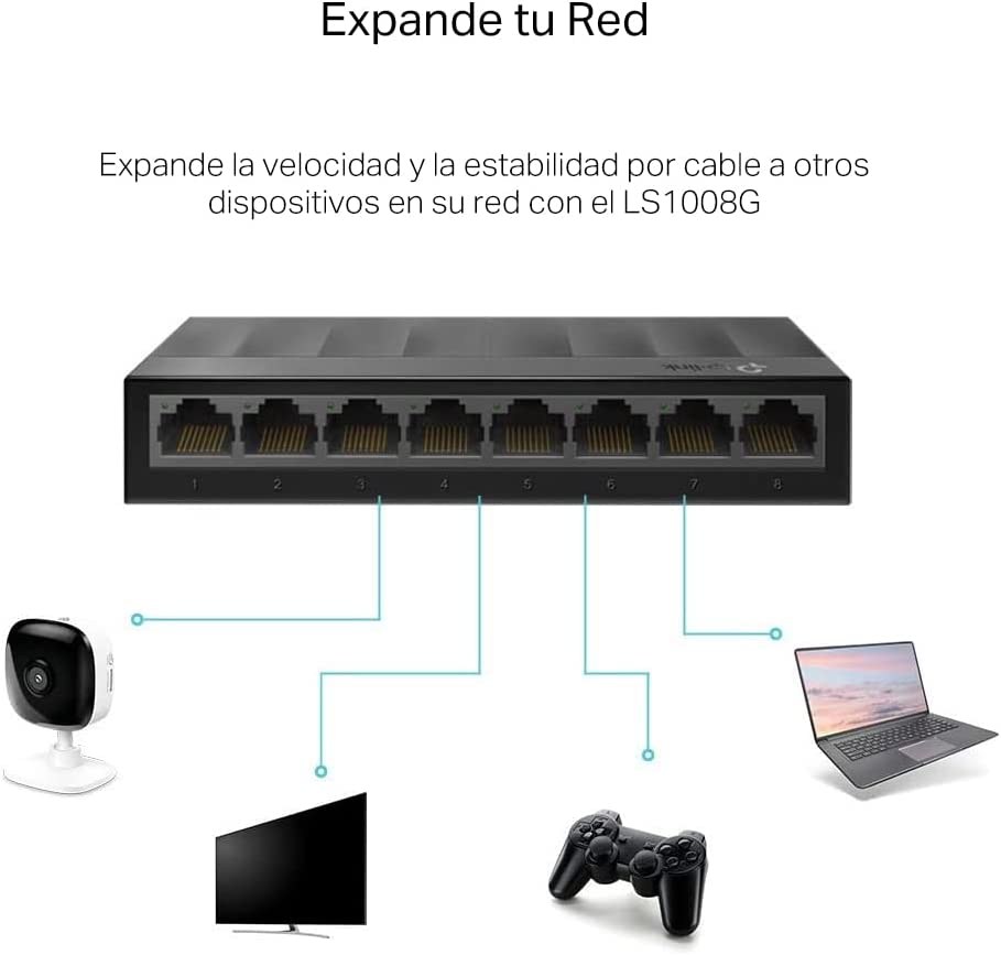 TP-Link Litewave 8 Port Gigabit Ethernet Switch | Desktop Ethernet Splitter | Plastic Case | Unshielded Network Switch | Plug & Play | Fanless Quiet | Unmanaged (LS1008G)