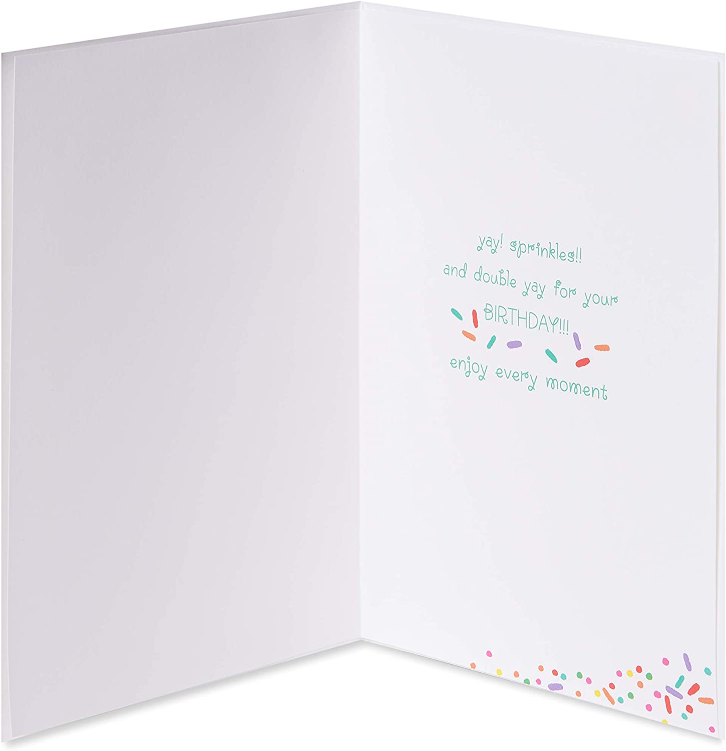 Hooray for birthdays! Three cheers – one for each layer of fun on this bright and celebratory birthday card by Papyrus. A big piece of cake takes center stage on this colorful design with lots of extra embellishments like glitter, embossing, gems, sequins and beads secured behind a clear plastic overlay, and dimensional paper attachments. Like the perfect birthday, it’s a little over the top in all the best ways, and it’s fun to send to anyone who deserves some bigtime birthday cheer. Includes lavender envelope with colorful polka dot lining and a classic gold seal. Extra postage is required.