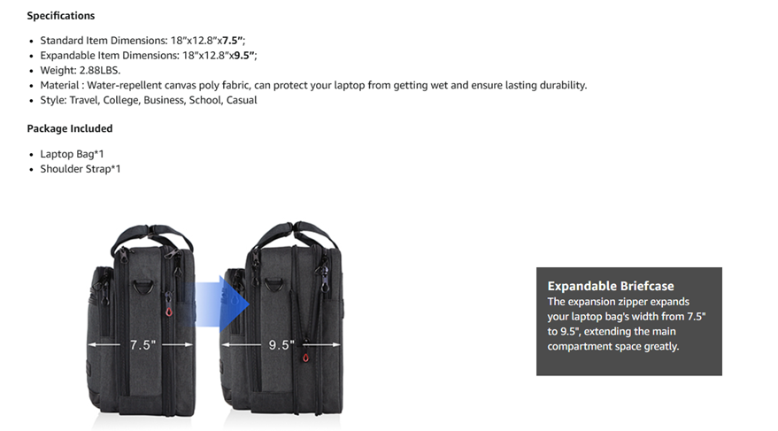 - EXPANDABLE CAPACITY: This stylish laptop briefcase is designed with expandable capacity, the expansion zipper will extend the main compartment space greatly, in which there will be more space for your clothing and files.