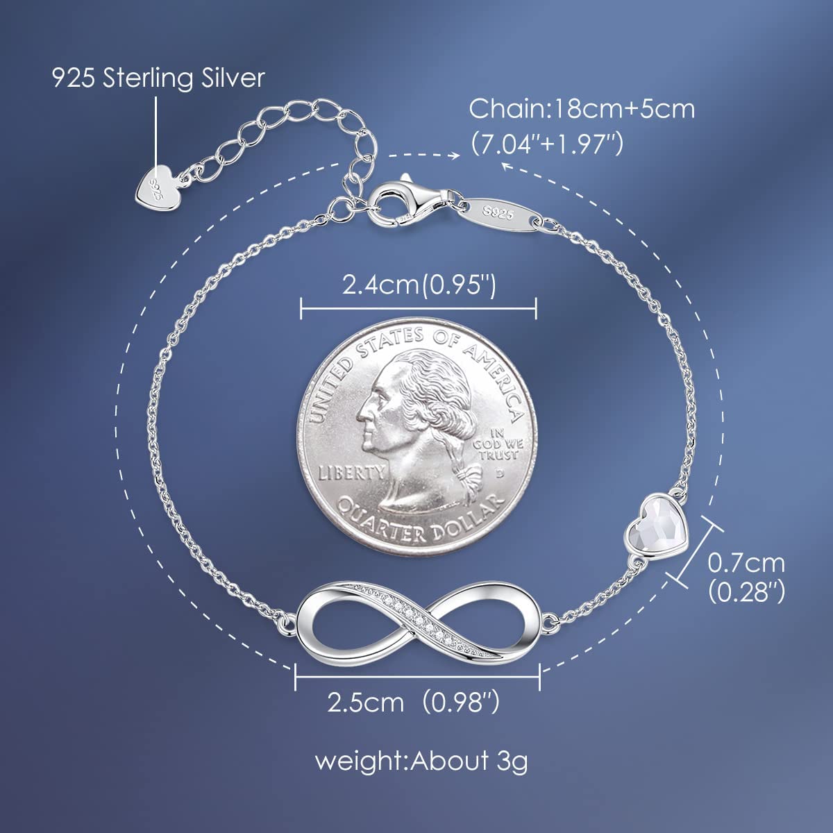 CDE Infinity Heart Symbol Charm Bracelet for Women 925 Sterling Silver Stainless Steel Adjustable Anniversary Mother's Day Jewelry Gift Birthday Gifts for Women Mom Wife Girls Her