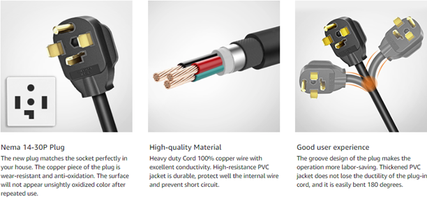 - Dryer Adapter Cord: Cleyean dryer adapter can connects the 3-prong plug of your dryer to the 4-slot outlet in your house. Nema 14-30 plug connect to the wall outlet. Nema 10-30 socket connect to your dryer plug.