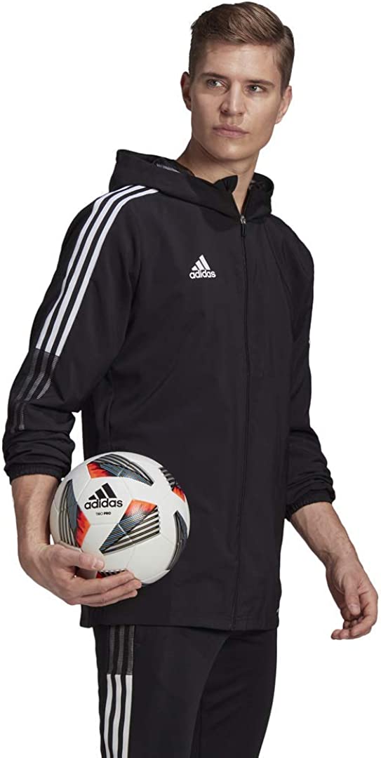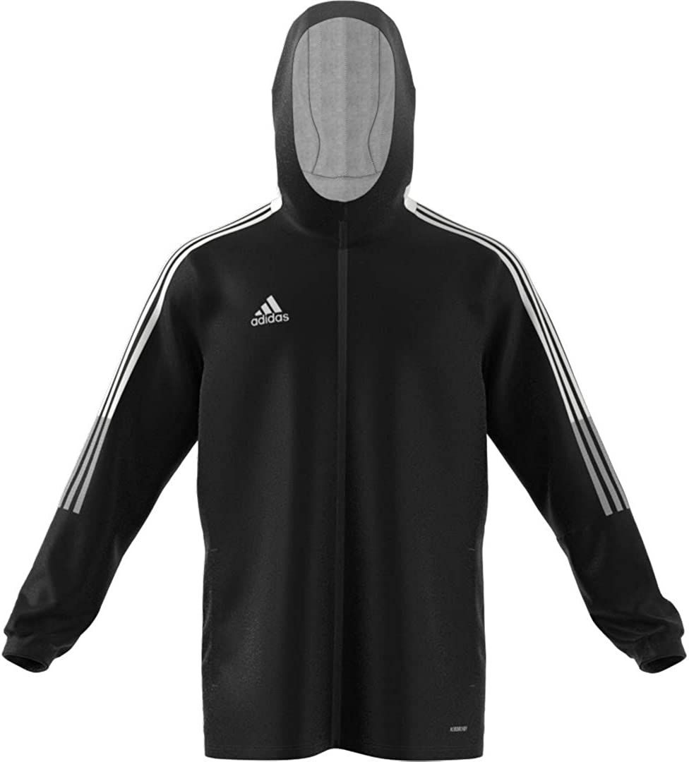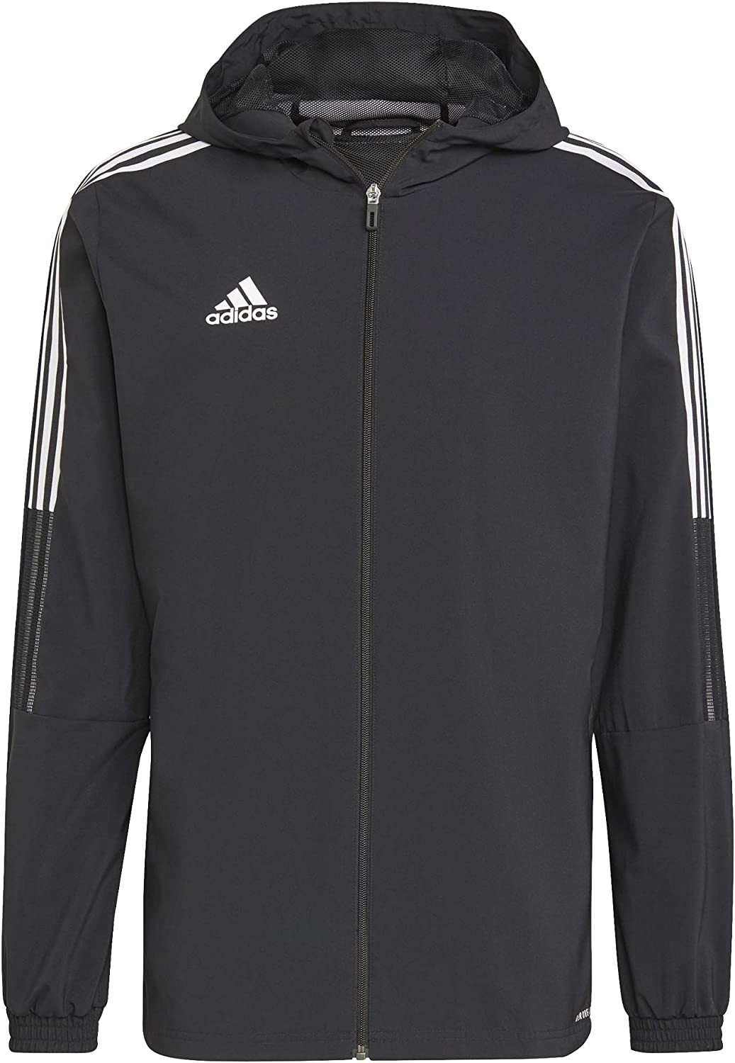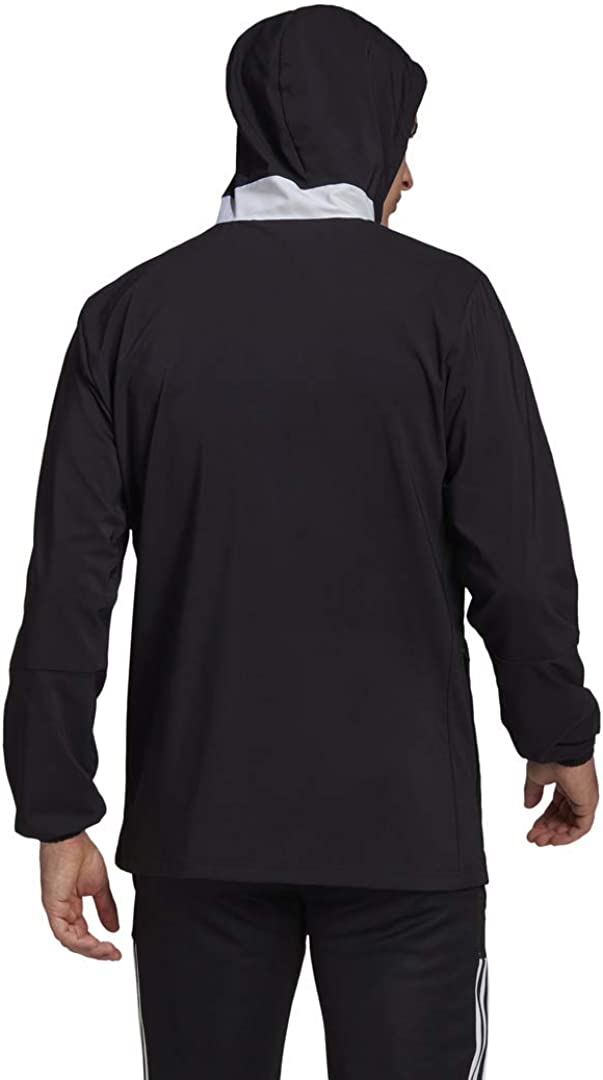 A bit of wind can't keep you off the soccer field. This men's adidas windbreaker features AEROREADY that manages moisture so you stay dry. A full zip and a hood let you adjust to the elements.