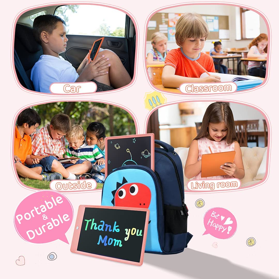 • Portable and Durable: The writing tablet is made of ABS material, add round corner design which has good shocks and drops resistance. The weight only 150 grams and has only 1/ 3 inches thickness, easy to place in school bags, handbags, travel bags. And this travel toys can be easy to carry, suitable for multiple occasions: airplane, car, restaurant, sofa, bed etc. So it is kids car ride and airplane travel essentials