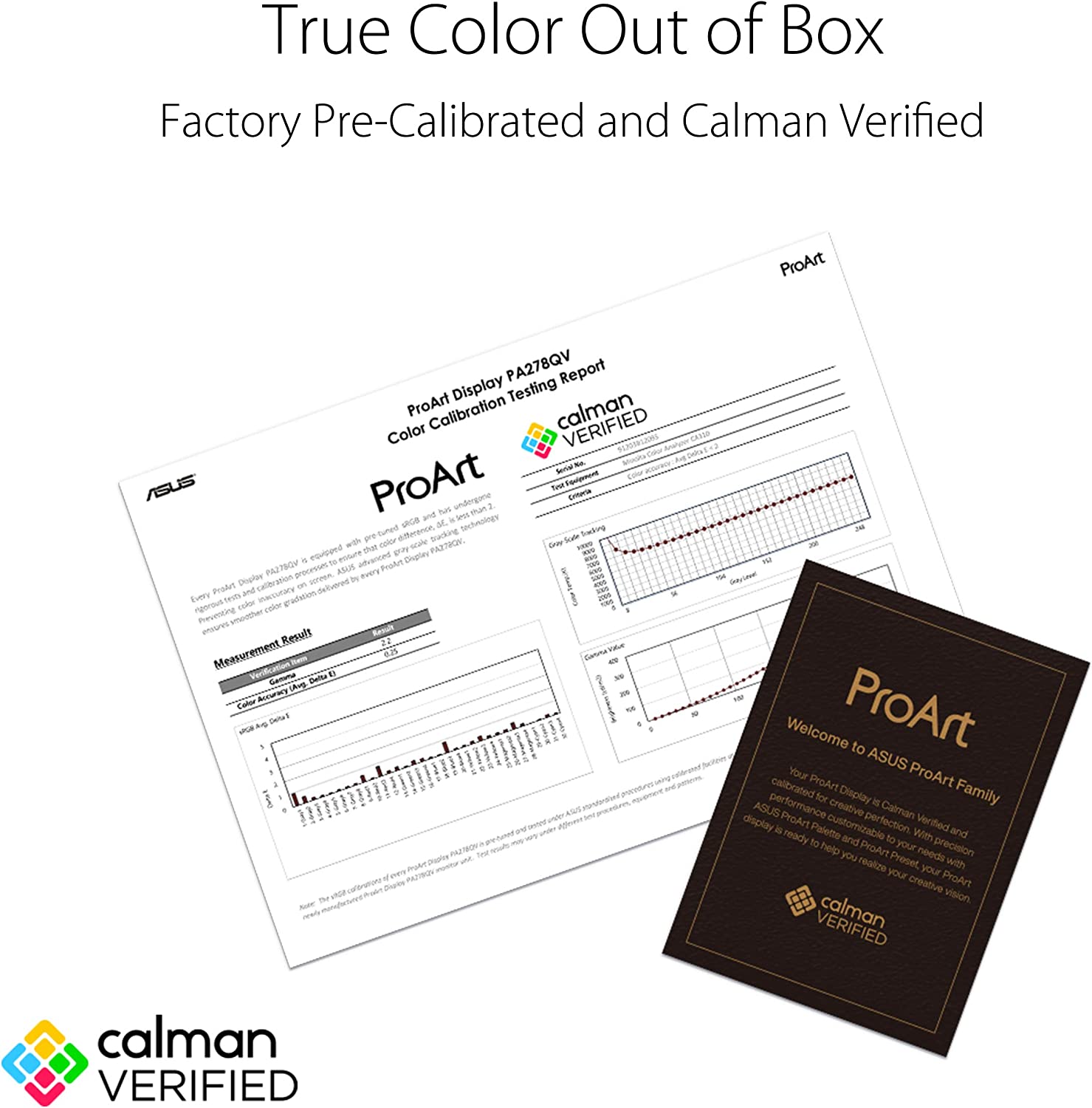 ASUS ProArt Display PA278QV 27” WQHD (2560 x 1440) Monitor, 100% sRGB/Rec. 709 ΔE < 2, IPS, DisplayPort HDMI DVI-D Mini DP, Calman Verified, Eye Care, Anti-glare, Tilt Pivot Swivel Height Adjustable