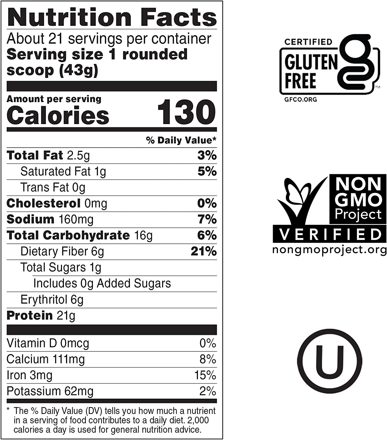 LACTOSE FREE PROTEIN POWDER: Complete protein with all essential amino acids and no whey. One serving of protein powder has 21g of protein and only 1g of naturally occuring sugar (no added sugar!). This protein powder is great for active lifestyles of men and women, for pre or post workout. Our protein powder is certified gluten free, GMO-free (Non-GMO Project verified), soy free, refined sugar free, and kosher.