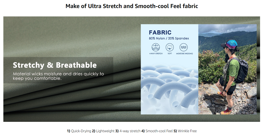 • Stretch, ultra-Soft and lightweight fabric wicks moisture away from your skin, keeping you from getting damp and chilled while lounging or hiking