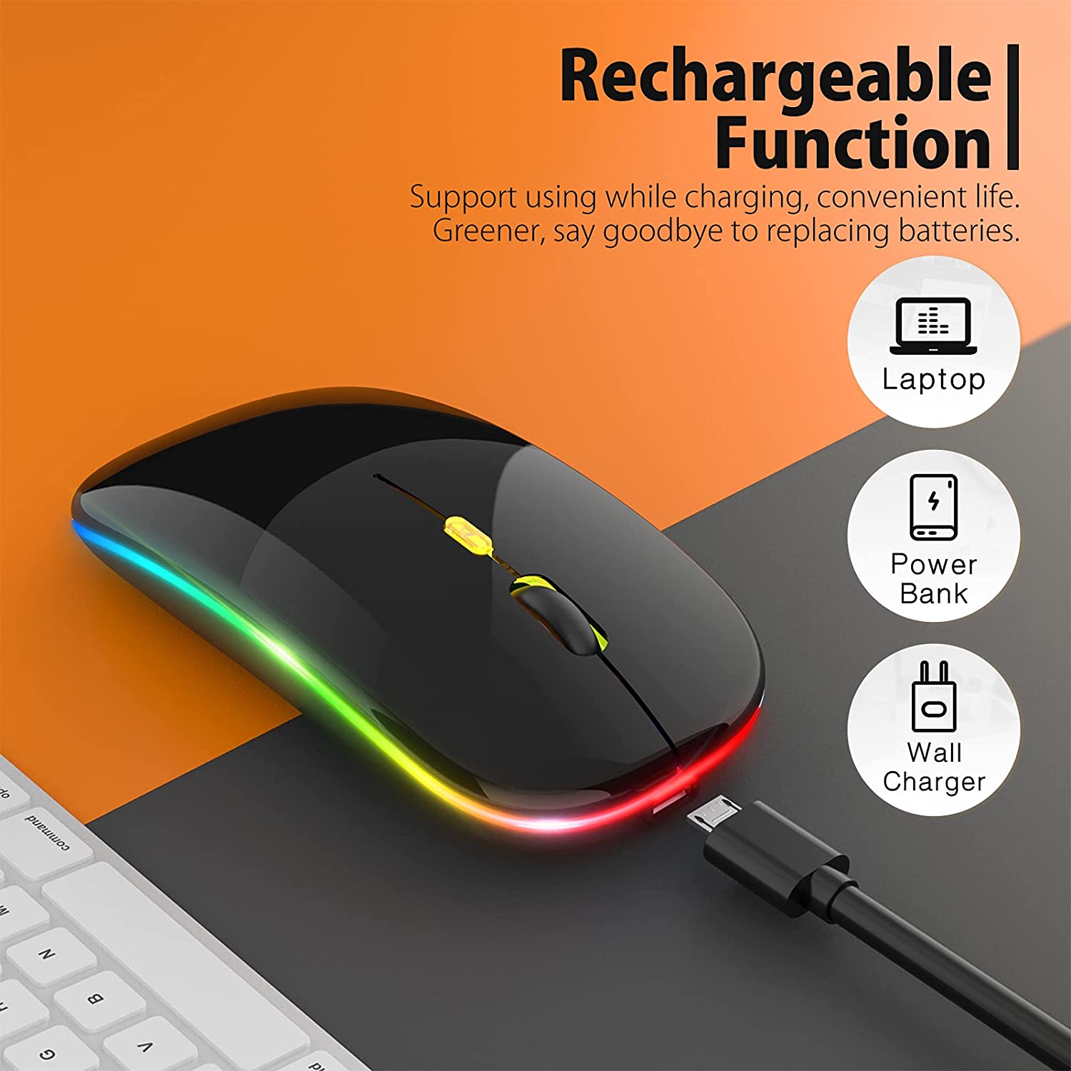 • 【Rechargeable Optical Mouse】Built-in durable rechargeable battery, it can be easily charged using the included USB cable without replacing the battery. Just 2 hours charging, you can use it about 7-15 days. Standby time is very long, energy-saving features, automatic sleep mode and wake-up mode are installed to save energy. Turn off the mouse LED light when not in use to save power.