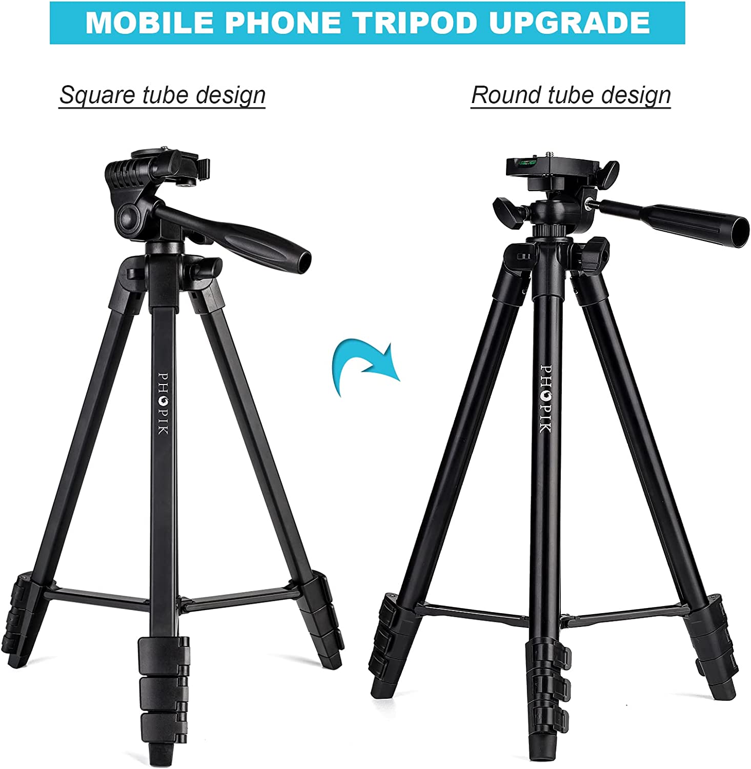 【Mobile Phone Tripod】The tripod is equipped with a mobile phone holder and a camera quick release plate. The phone clip can be adjusted between 3.3-5.2 inches. A 1/4 screw can mount the camera. Take photos/videos with excellent stabilization while keeping your hands free. Phopik brings you our professional portfolio of all-in-one shoots to take your shoots to the next level. Great for Selfies, Group Photos, Adventure Travel, Vlogs, Youtube Videos, Podcasts, Facebook Live, Live Streaming