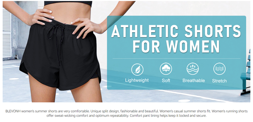 BLEVONH Women Drawstring Waist Athletic Running Shorts with Liner Inner Pocket