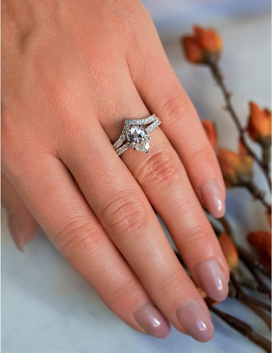 2.10 Carat Pear Shaped Moissanite Center Stone
