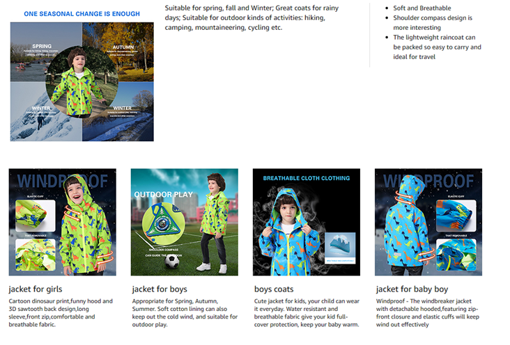 Light, thin windproof & waterproof fabric, not only a toddler rain jacket, but also a windbreaker jacket, keep the boys raincoat dry & clean in wet rainy & foggy days.