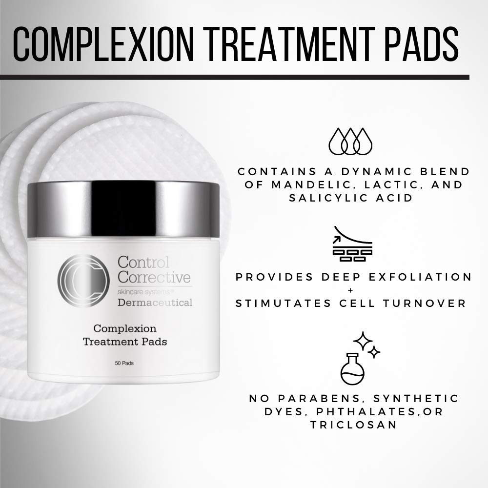 CONTROL CORRECTIVE Complexion Treatment Pads - Exfoliate Pores, Eliminate Impurities, Pre-Moistened Woven Pads Smooth & Tone Complexion, Clears Breakouts, Smooths Skin, Peel Discoloration, Brightens