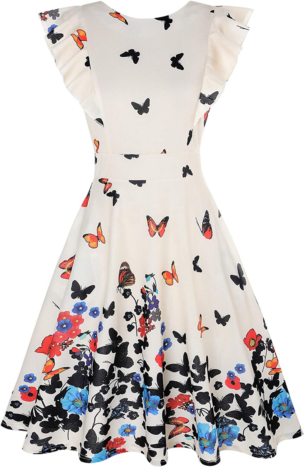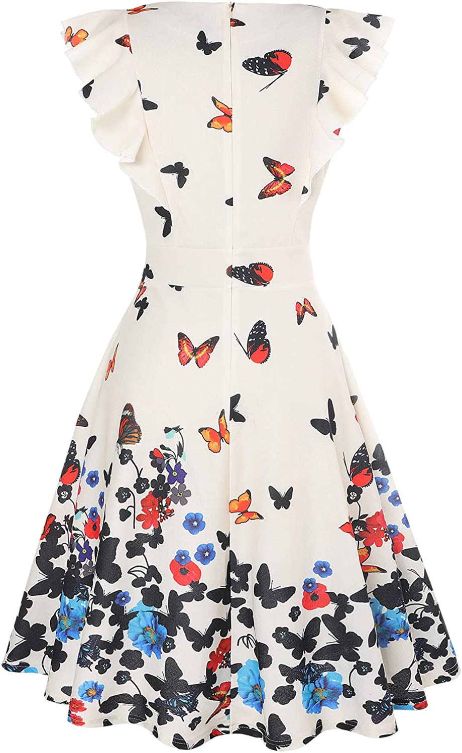 • FLATTERING RUFFLE SLEEVES : The sexy flutter sleeves add some pizzazz and not tight around your arms. Plus there is extra fabric that covers the space between your arm and the ruffle, this makes the dress very classy.¡¾WARM TIPS¡¿This size of vintage dress is smaller, to ensure your experience, pls order one size up.Thank you!