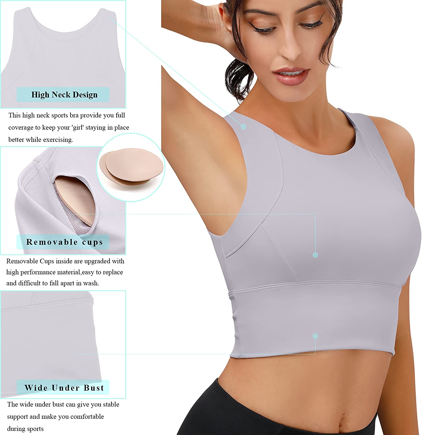 - More than a sports bra: This high neck energy bra top is specially designed to offer remarkable comfort and support throughout the day. The high neckline and full back coverage are ideal for whatever stretch or pose you’re doing, perfect for yoga, gym, hiking, fitness, jogging, boxing,etc. Goes well with workout wear or any outfits for lounging!