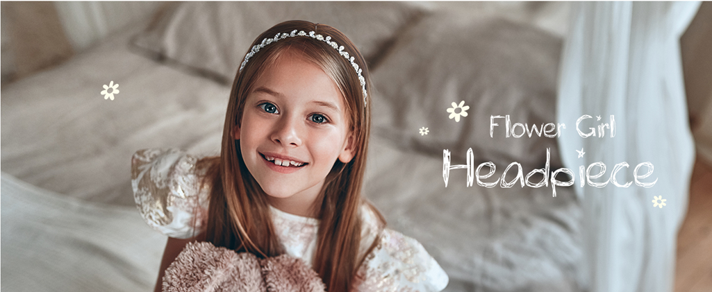 ❀This flower girl headpiece is adorned with sparkling crystal flowers and leaves. Available on soft adjustable ribbon that stays comfortable on your girl's head.