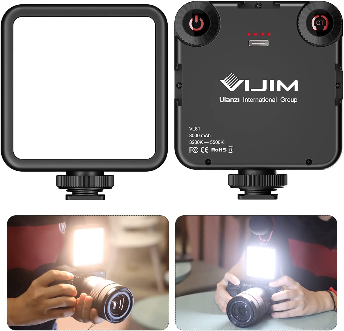 • Portable Light for Photograph: the VL81 camera light is very portable, super mini only 7.6*8.9*2.5cm/3*3.5*0.1in, ultra lightweight only 120g/4.2oz. And it has a hot shoe, enable to work as on camera light, extremely convenient for photograph